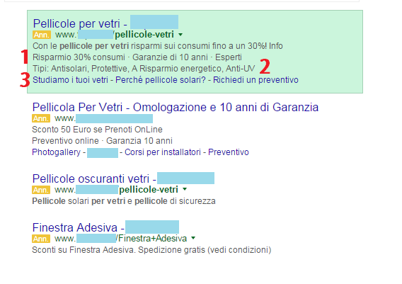 Ricorda inoltre di utilizzare tutte le estensioni rilevanti al tuo business, sarà Adwords a determinare quando mostrare una o l’altra, quindi è meglio che tu abbia configurato almeno le estensioni di località, i sitelinks, gli snippet strutturati, i call out e le estensioni di chiamata nei tuoi gruppi di annunci e campagne.